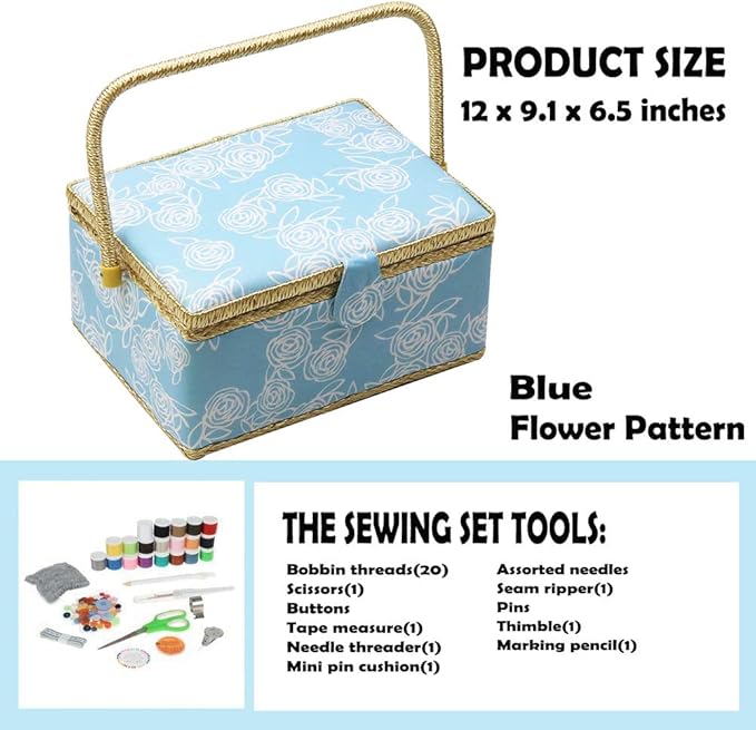Large Sewing Box With Set Accessories Sewing Basket Organiser With Accessories Diy Sewing Kits For Adults Blue Amazon De Home Kitchen