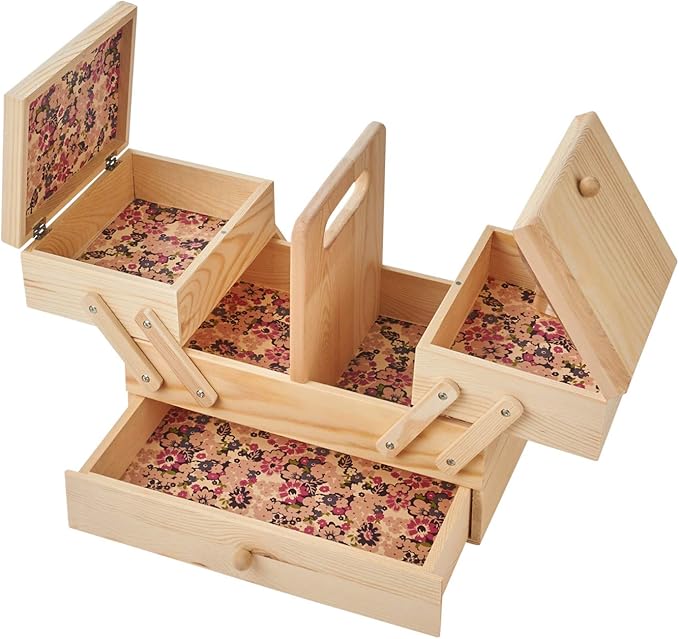 Wooden Cantilever Sewing Storage Box 29 X 17 X 24cm Natural Light Pine With Ditsy Floral Design Interior By Sewing Online Amazon Co Uk Home Kitchen