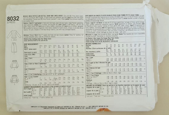 Sewing Pattern Simplicity 8032 Vintage 1990 S Suit Etsy